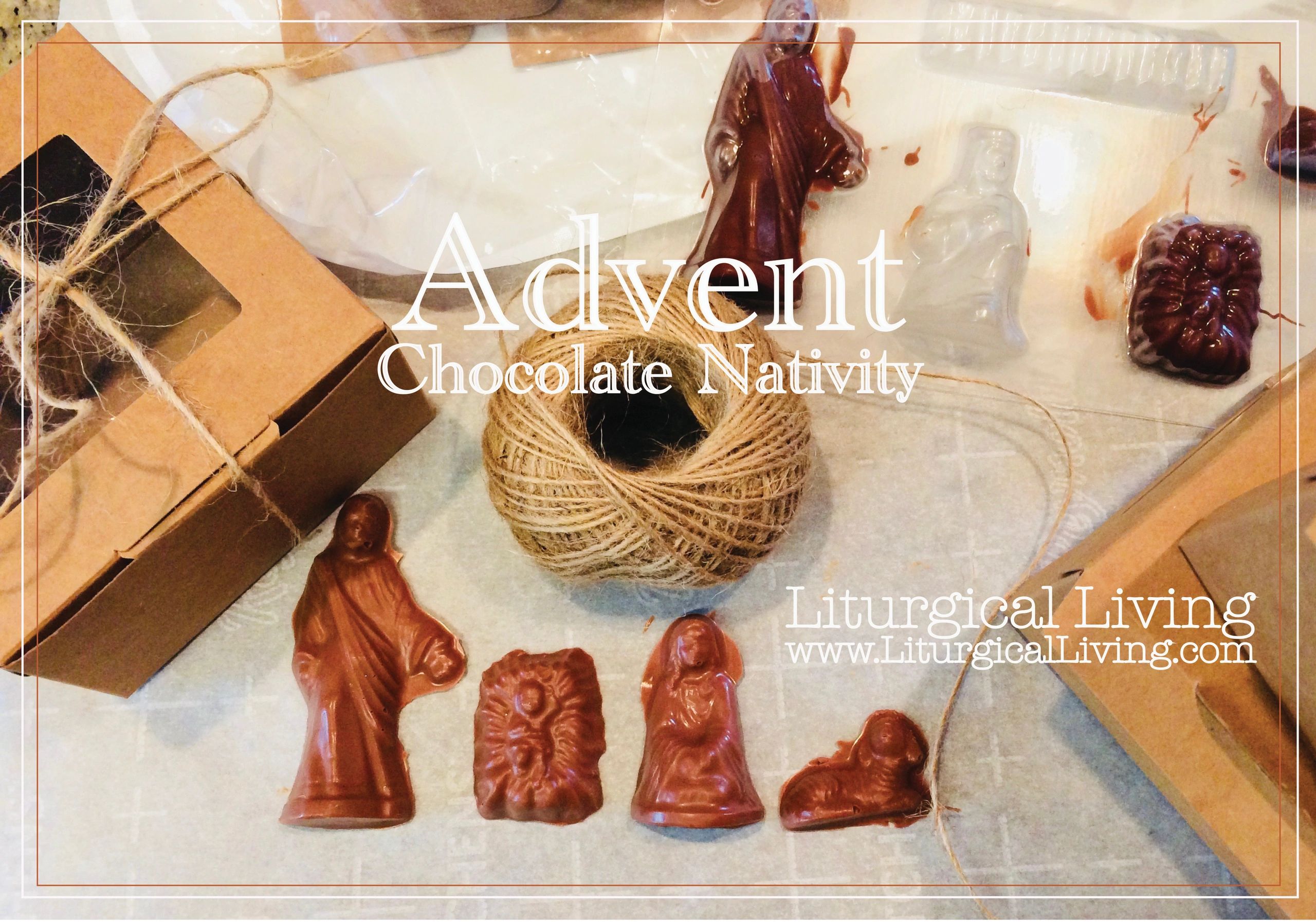 -Buy melting chocolate-melt it by slowly stirring, and careful to not overheat-add to molds-cool down in fridge -bend carefully to take out-and you have yourself the sweetest little holy family chocolates!