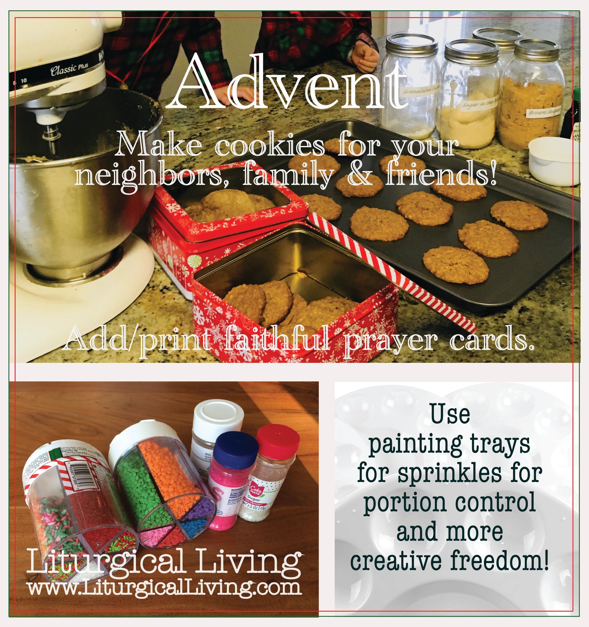 Years ago, our family friends with 7 children made tins and tins of chocolates for friends, and drove around delivering them to their friends for Christmas. It was such a joyous gesture that I haven't forgotten and have been inspired by it! You can add candy and prayers to the tins of cookies! We have had some wonderful and faithful friends inspire us along the years! The dollar store sells tins, or you can order them in bulk, or do fun bags!